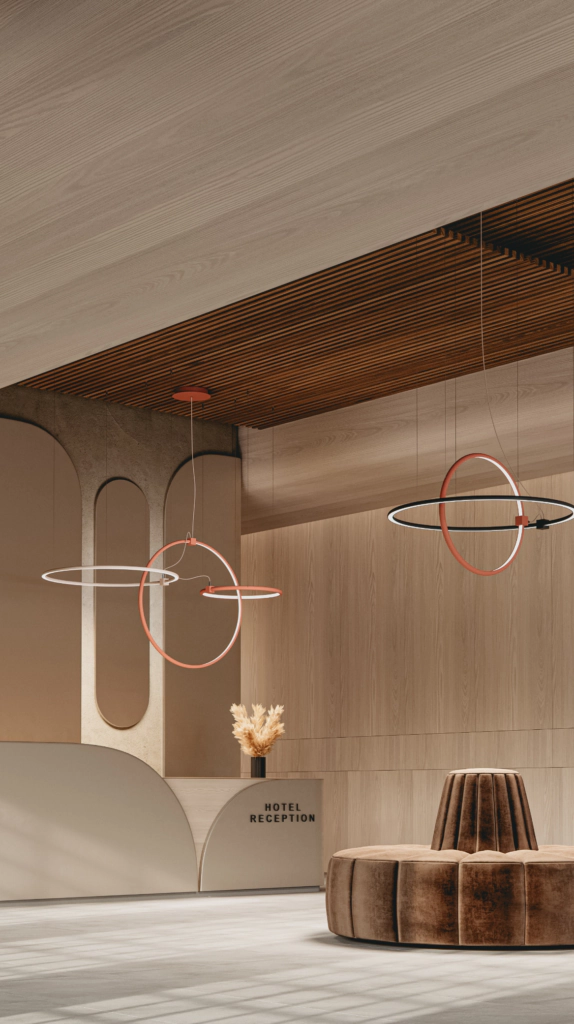 Compoziții uimitoare din inele care emit lumină în trei direcții distince. Un statement vizual perfect pentru lobby-uri și spații ample.