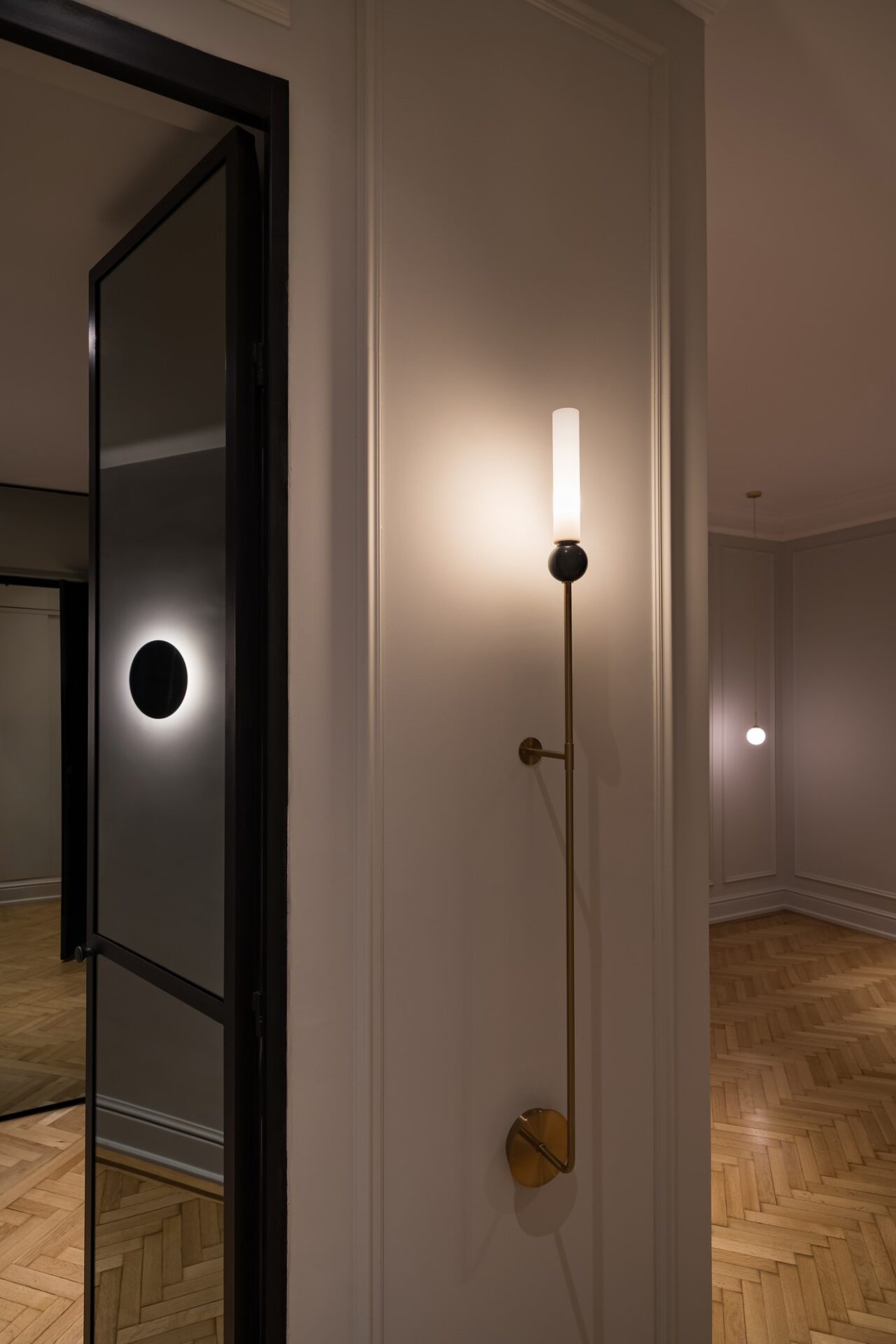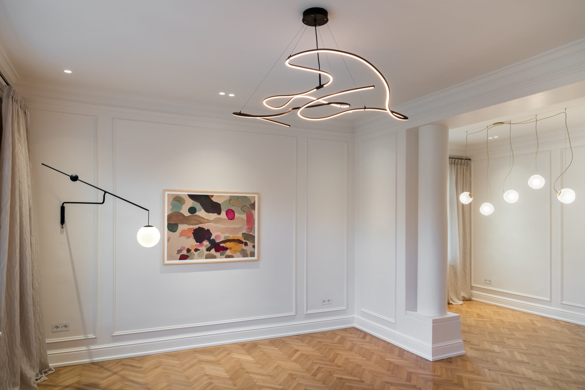 Pentru a pune în valoare texturile și volumele acestui spațiu rezidențial finalizat în 2025, am selectat corpuri de iluminat de la furnizori de renume internațional, recunoscuți pentru inovație și estetică: