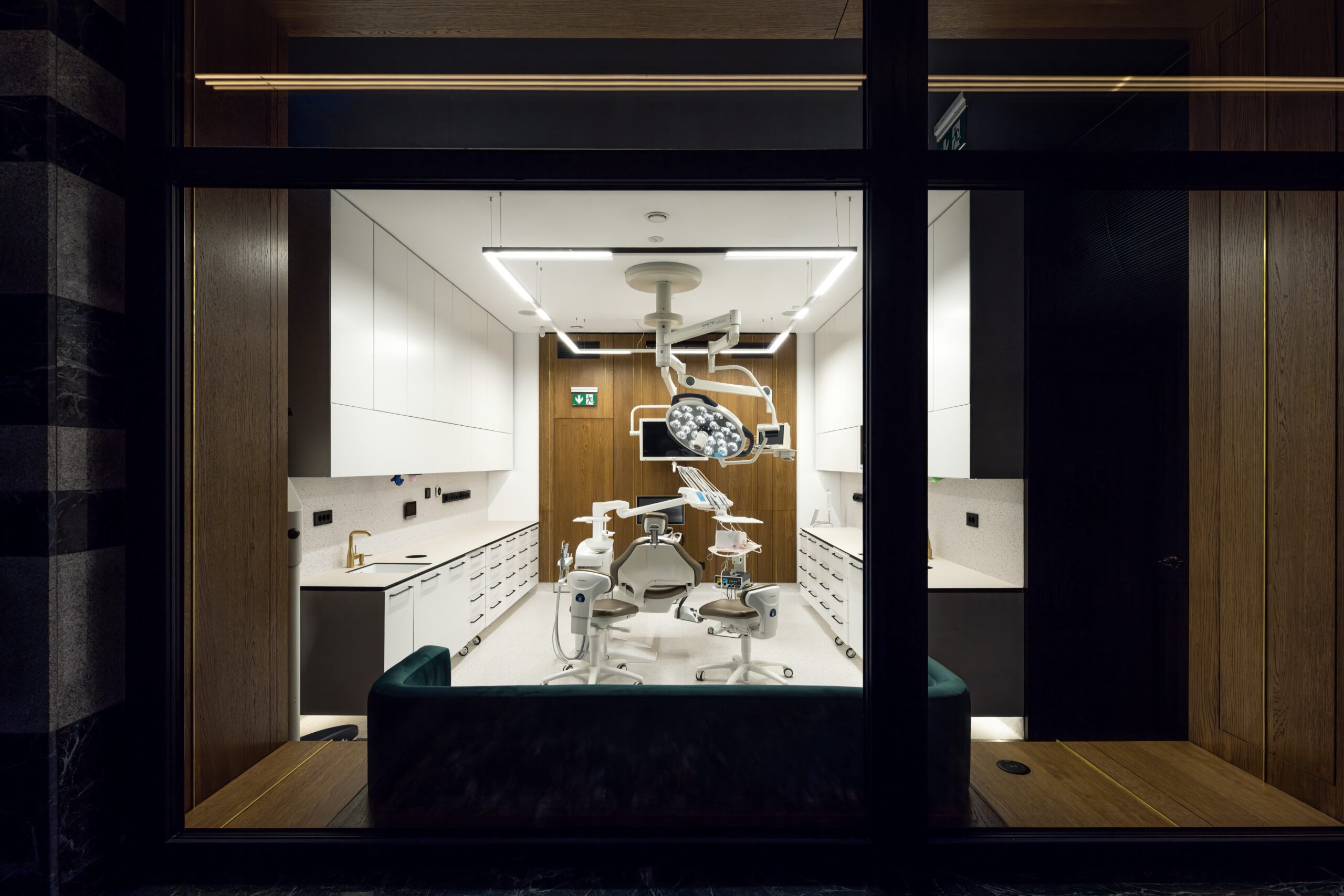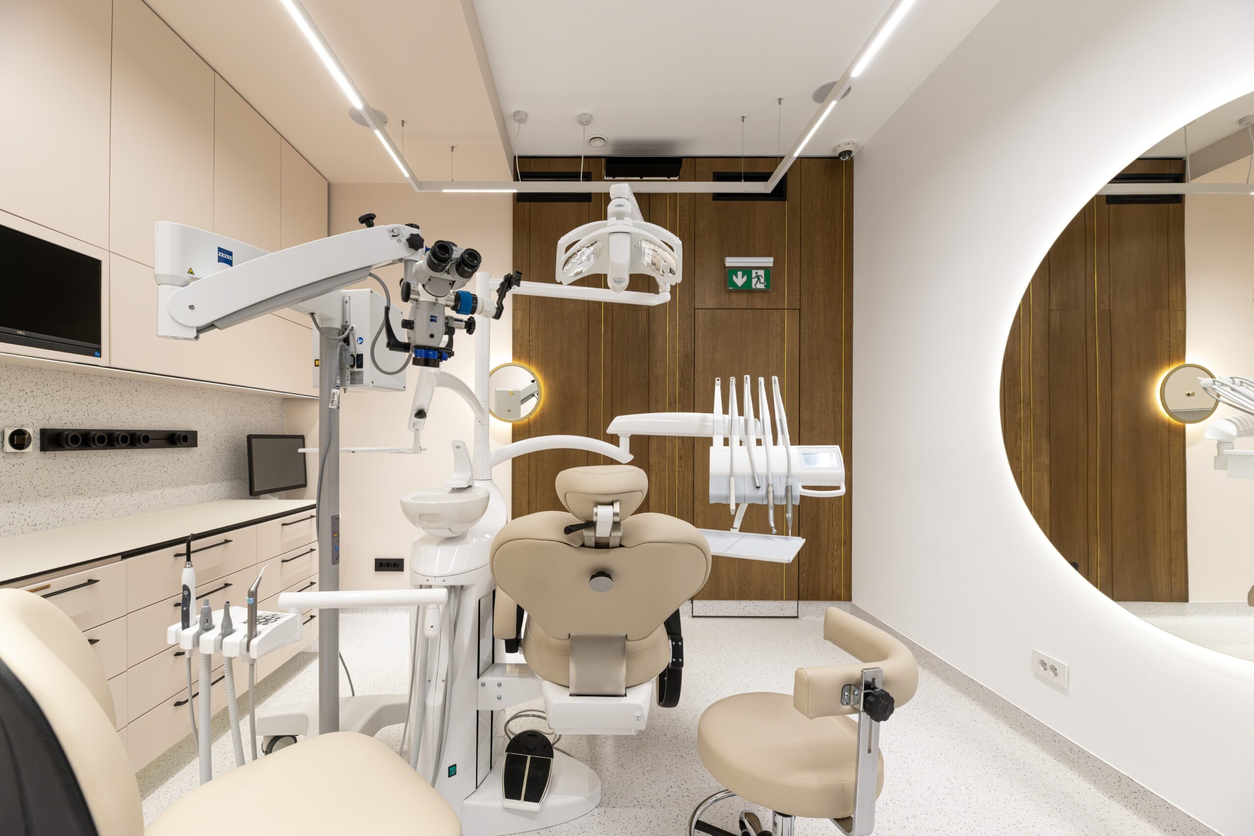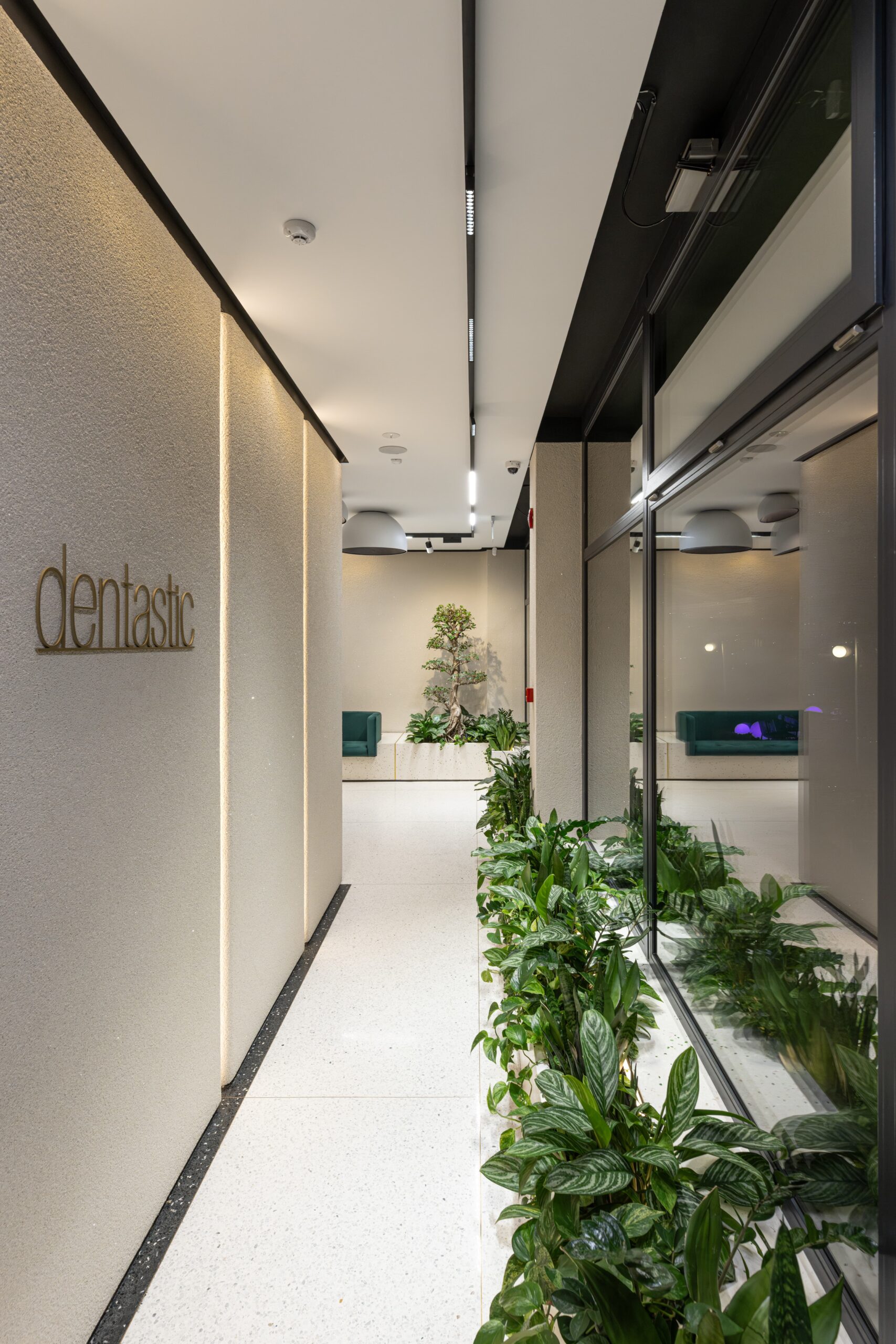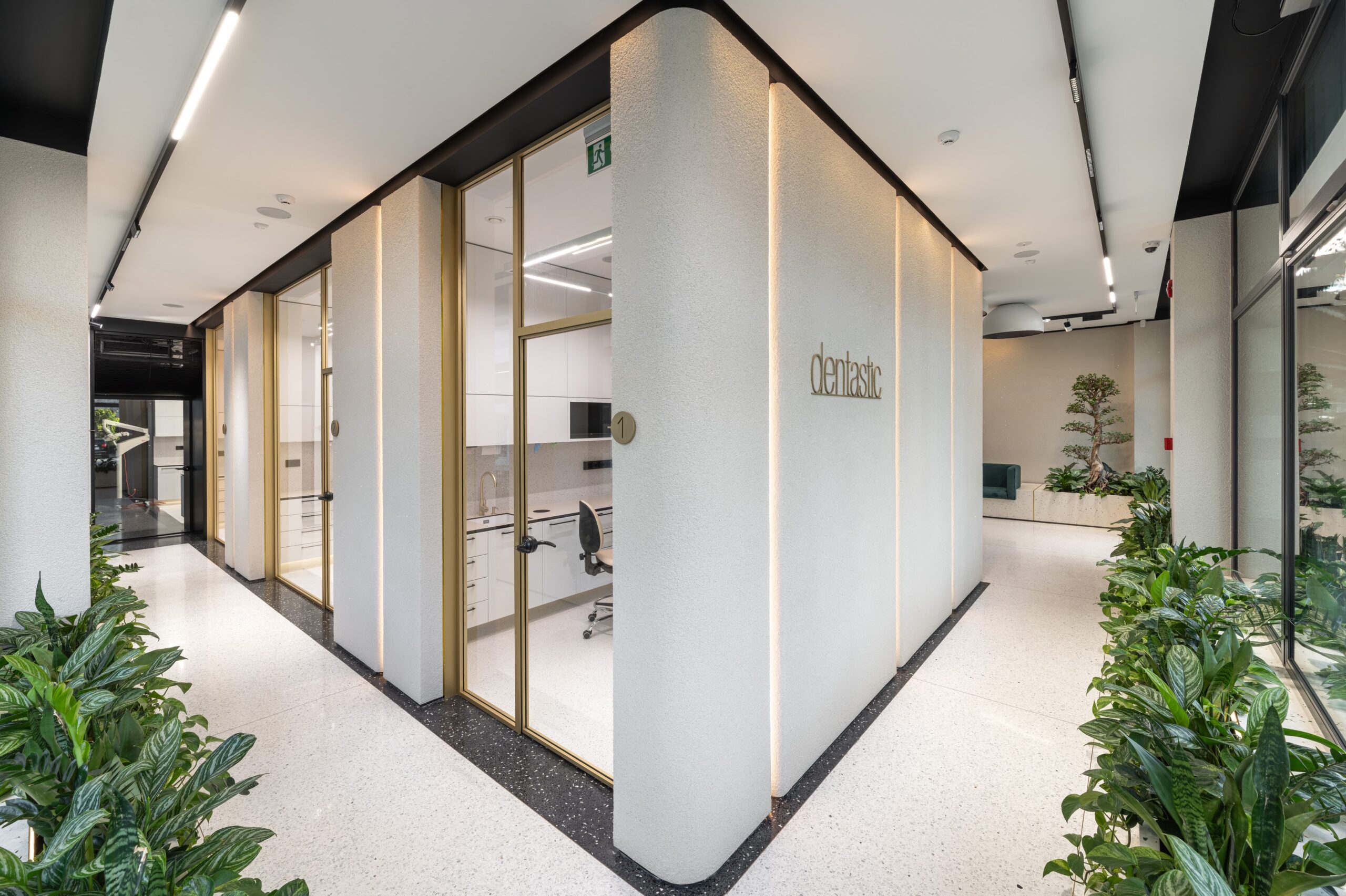 Conceptul propus de noi s-a dezvoltat în jurul dorinței de a oferi o imagine atemporală, prin intermediul unor materiale și detalii surprinzătoare care să ofere pacienților o nouă perspectivă asupra experienței actului medical. Cortina texturată preia pacientul din zona recepției, un spațiu elegant și călduros și îi dezvăluie subtil spațiile în care se desfășoară actul medical. Plantele extind către interior parcul adiacent clinicii și conferă un efect relaxant spațiilor intermediare destinate așteptării.