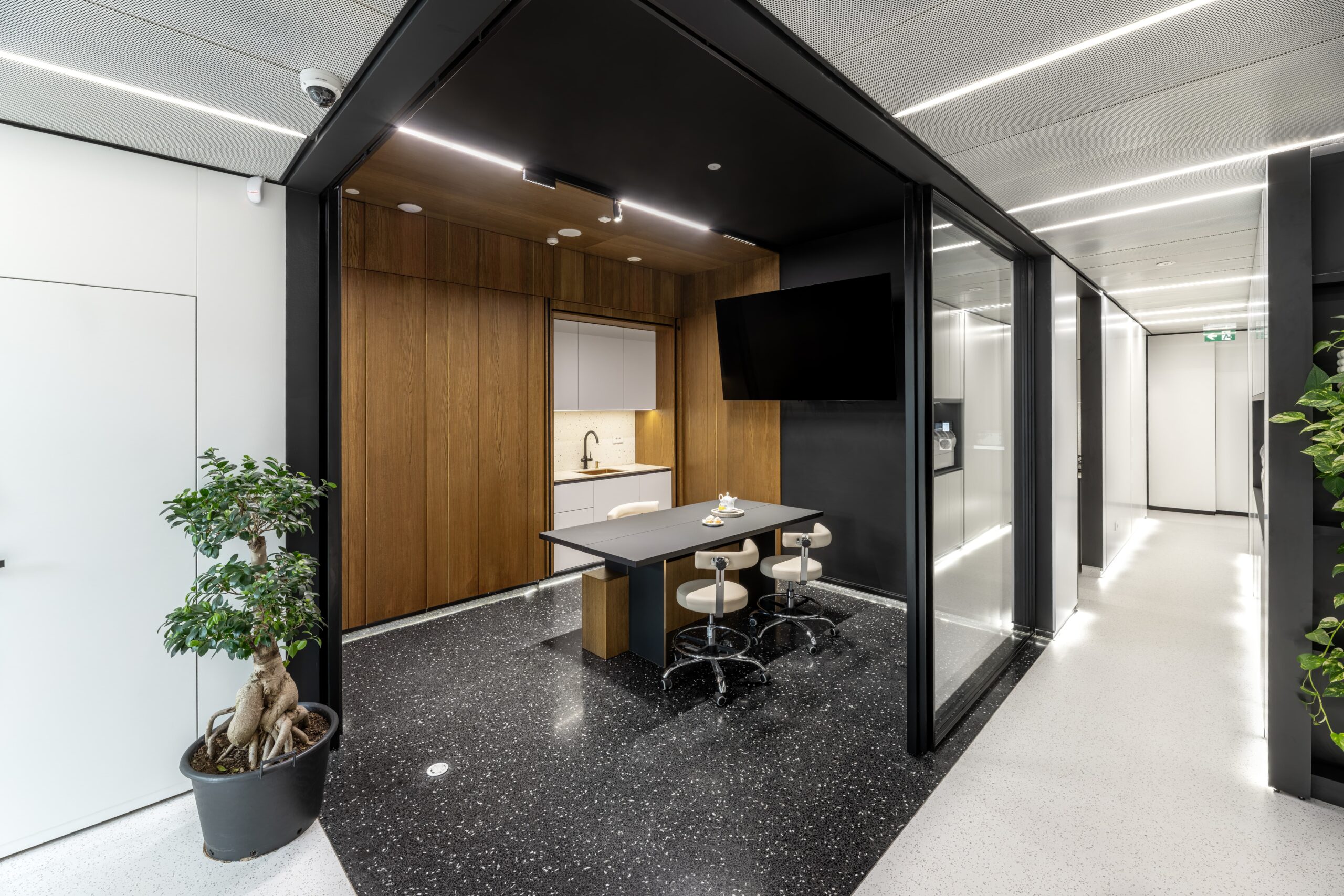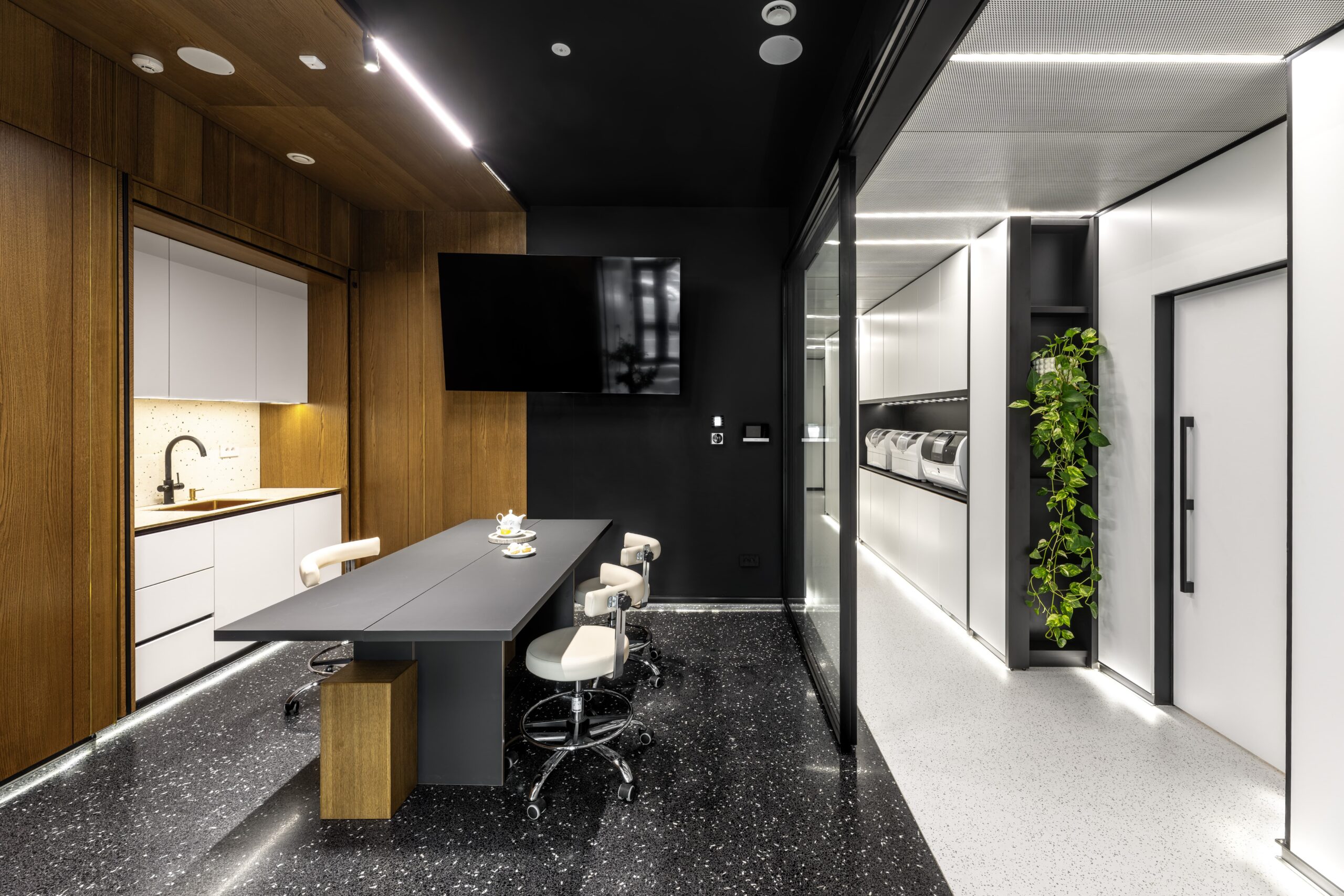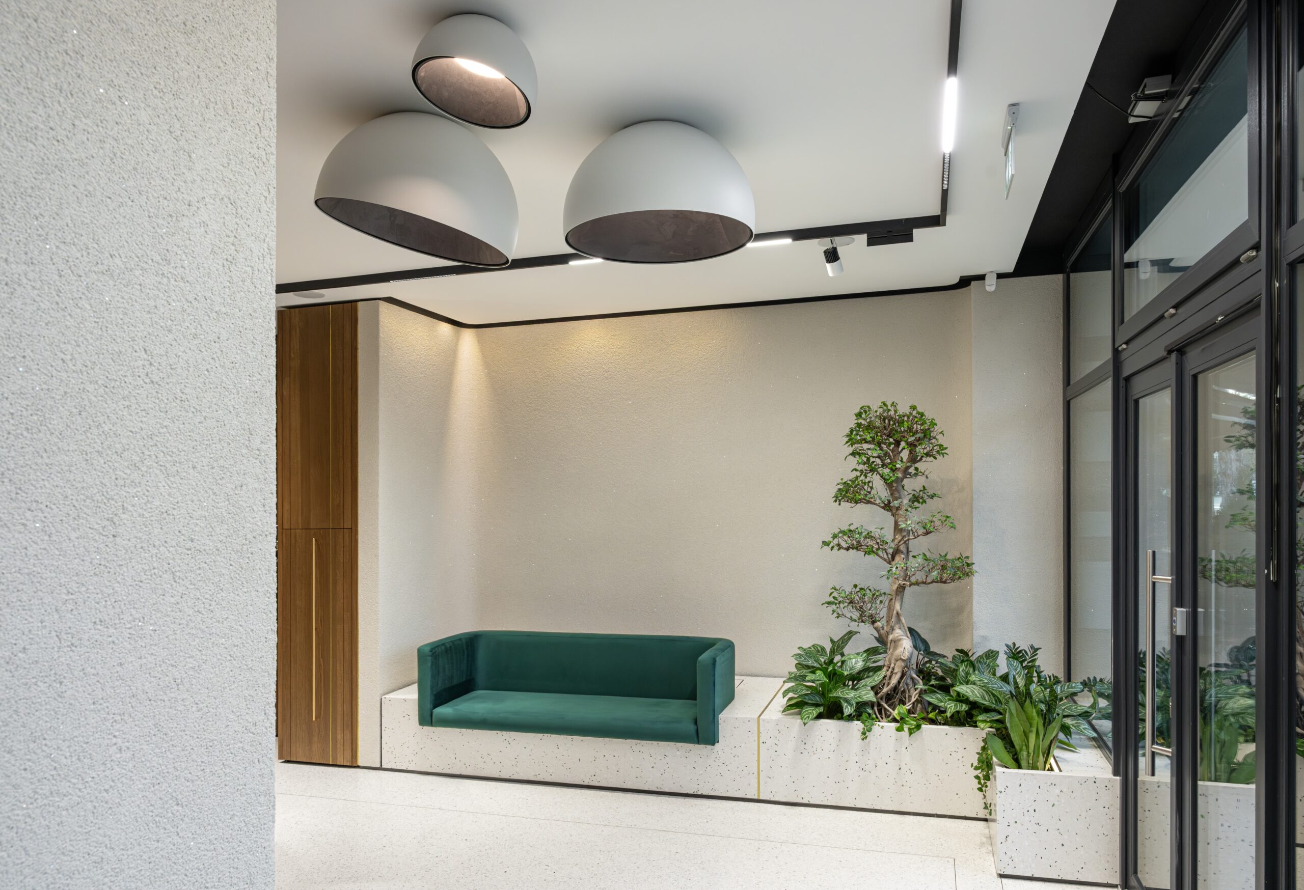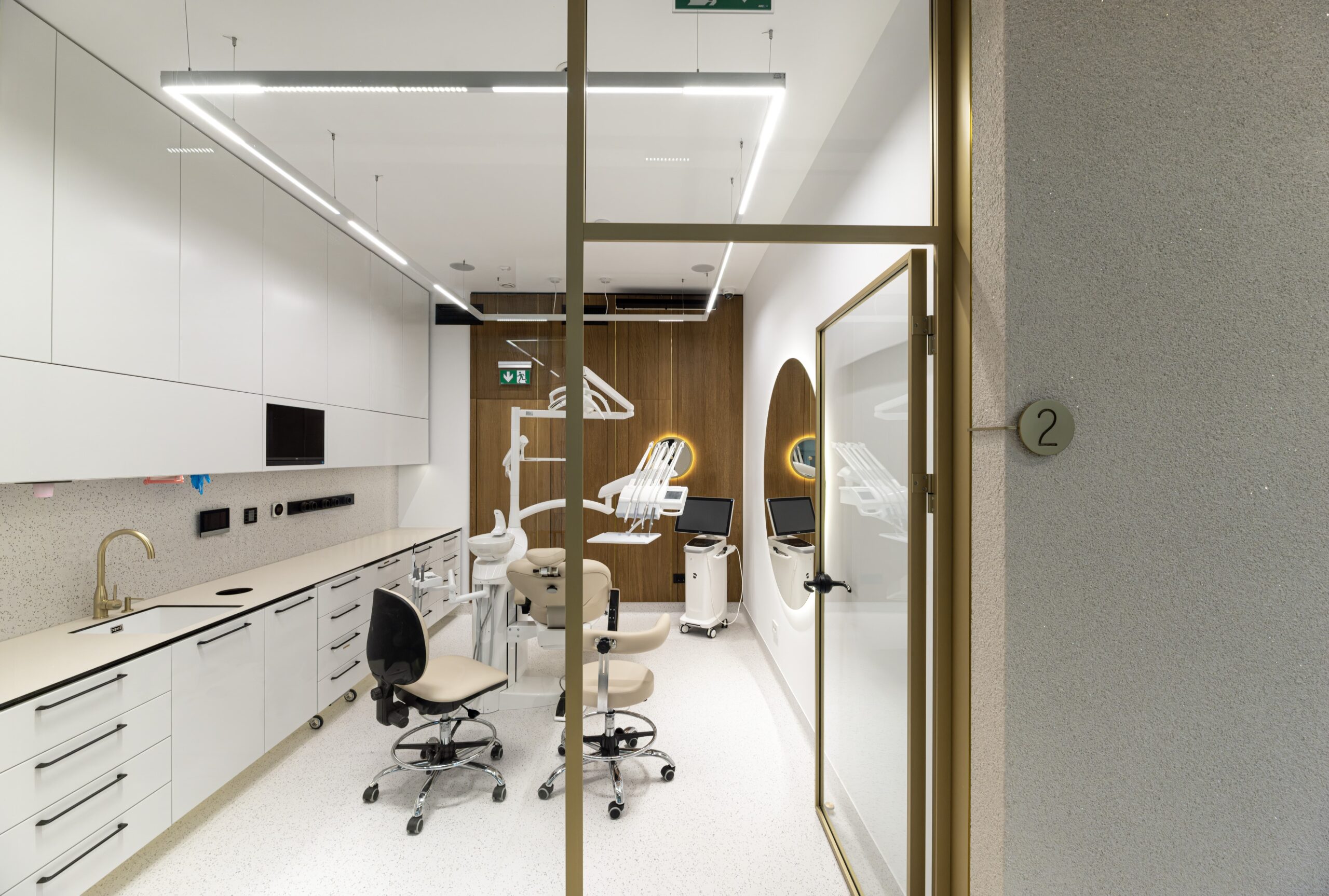 Conceptul propus de noi s-a dezvoltat în jurul dorinței de a oferi o imagine atemporală, prin intermediul unor materiale și detalii surprinzătoare care să ofere pacienților o nouă perspectivă asupra experienței actului medical. Cortina texturată preia pacientul din zona recepției, un spațiu elegant și călduros și îi dezvăluie subtil spațiile în care se desfășoară actul medical. Plantele extind către interior parcul adiacent clinicii și conferă un efect relaxant spațiilor intermediare destinate așteptării.
